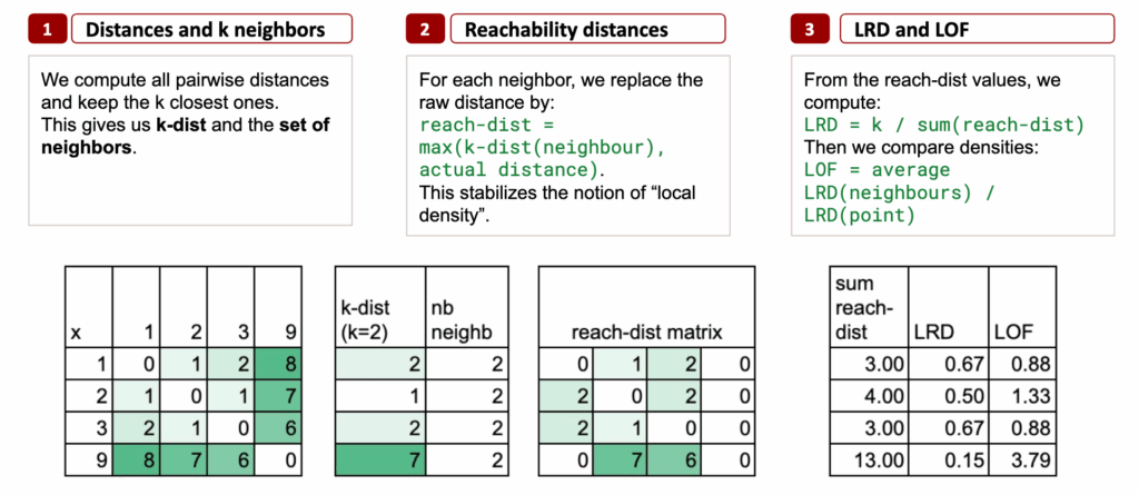 - If LRD(p) ≈ LRD (neighbors), then LOF ≈ 1