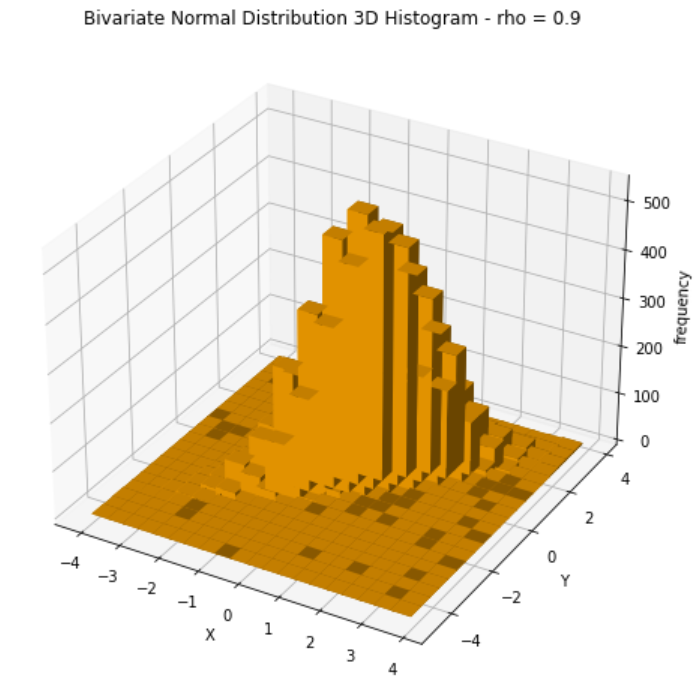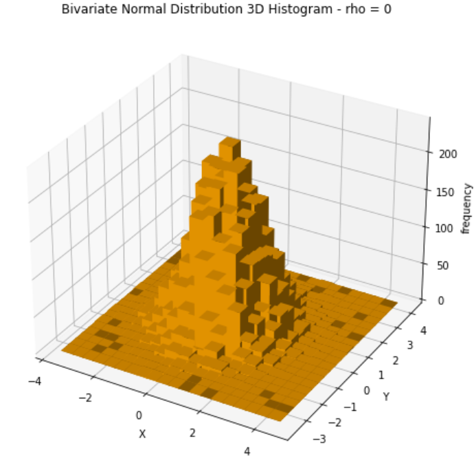 Before making a practical example using a linear regression, I will run some Python simulations to better highlight the form of bivariate normal distributions and what to expect by its projection.
