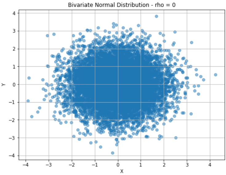 A first edge case could be to set ρ = 0, meaning that the two random variables are not correlated: