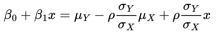In this way, we can use the (estimated from dataset) parameters of the distributions to estimate the linear regression coefficients. Let’s first equate the two expressions: