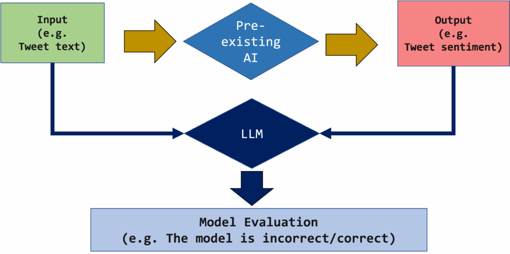 In situations like this, you can use an LLM to evaluate how this V0 model is performing. The LLM becomes the evaluator (or the judge) for your early prototype, giving you immediate feedback without requiring a large labeled dataset or the huge effort we mentioned earlier.