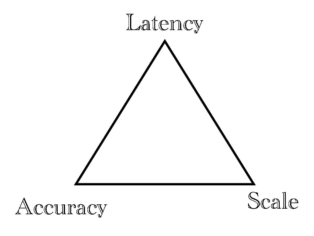 Accuracy, latency, and scale in a Machine Learning system form a triangle. You can only fully optimize two at the same time.