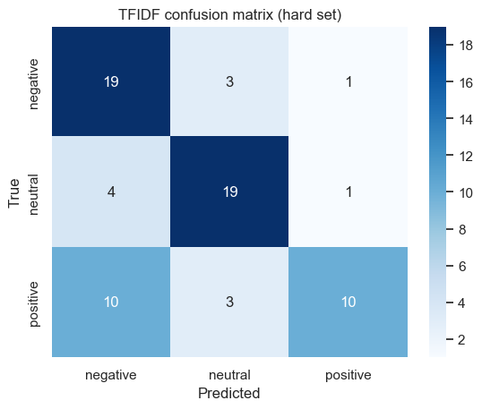 - We tackled the easy case using TF-IDF with Logistic Regression and SVM. The tweets were clear and direct, and both models performed almost perfectly.
