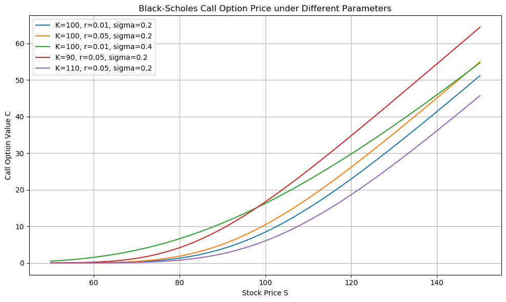 From this equation, we can derive the fair price of the call option to have a risk-free portfolio. The equation is closed and analytical, and it looks like this: