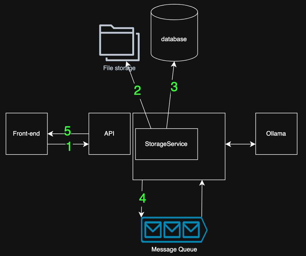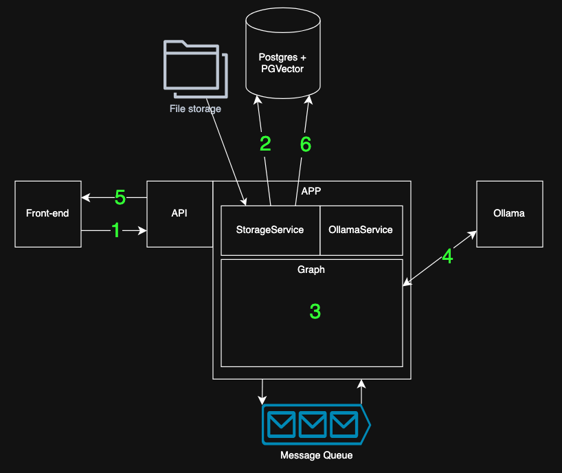 file_idis published to a message queue - the request is completed; the users can continue using the front-end. Heavy processes (chunking, embedding) happens later in the background)