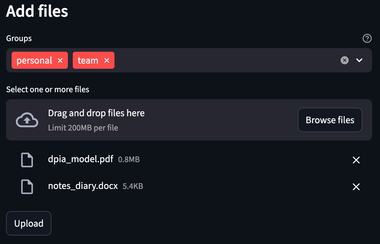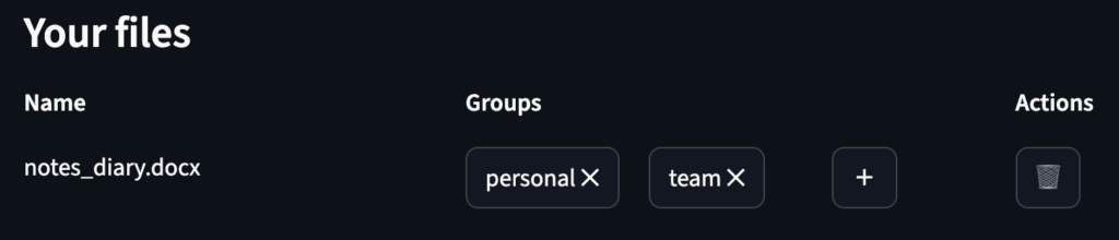 As an extra challenge, I wanted the system to support multiple users. Not a shared assistant but a private agent for every user where user has full control over which files their agent can read and reason about.