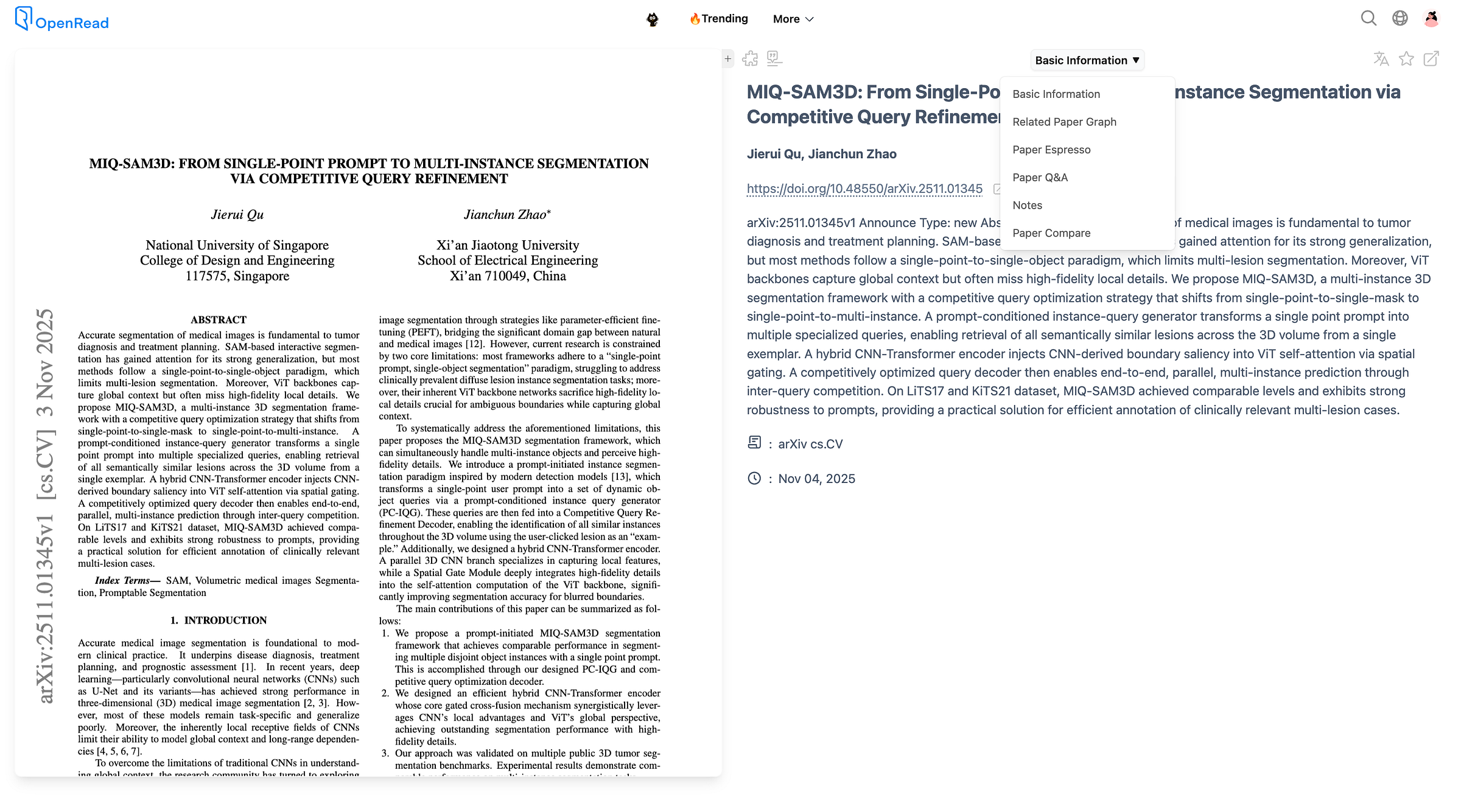 - OpenRead is a great option for reading papers as well as doing literature survey. It has some great add-ons like comparing papers, paper graphs to show connected papers and a paper espresso feature that gives a concise one pager summary of the paper.