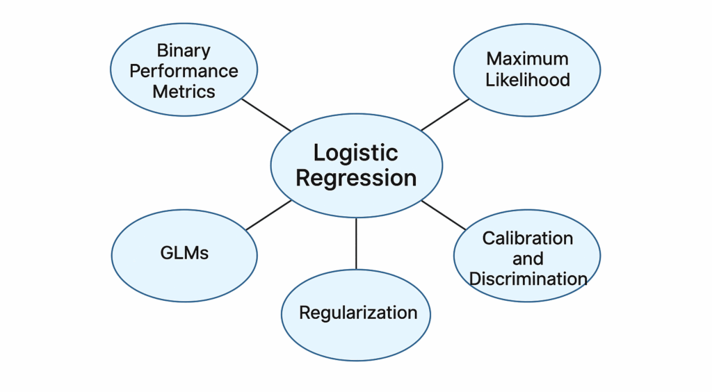 Here is an example of a small web of topics around logistic regression. I only included a few topics for the illustration – I’m sure you could come up with many more. Each one of the topics in the web have their own web, making a mega-web of related study topics.