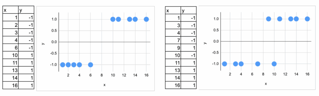 So, we use two datasets that I generated to illustrate the two possible situations a linear classifier can face: