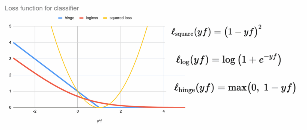 - use log-loss, hinge loss, or other margin-based losses,