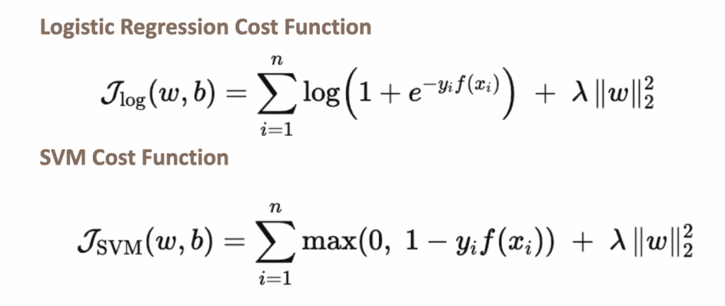 We can now just write down the cost function of the two models: Logistic Regression and SVM.