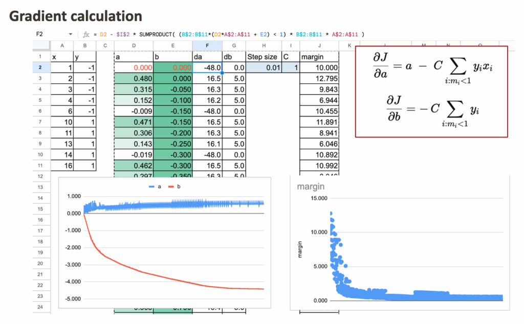 We now train the SVM model explicitly, using gradient descent.
