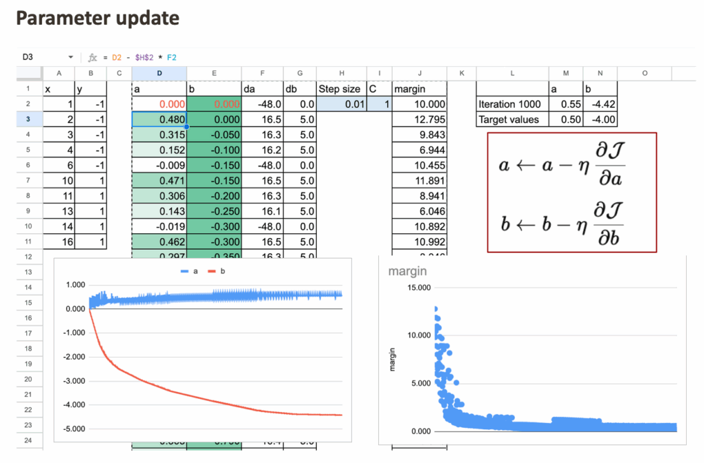 So we can visualize, step by step, how the margin evolves during the learning process.