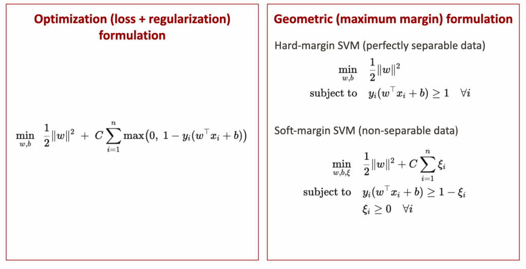 Optimization vs. geometric formulation of SVM