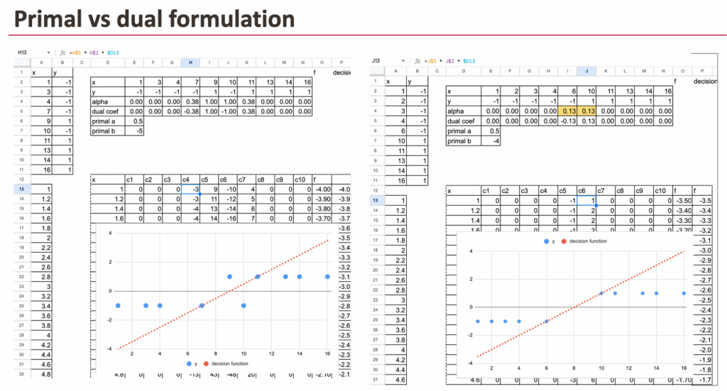 We will not derive or implement the dual form in Excel, but we can still observe its result.